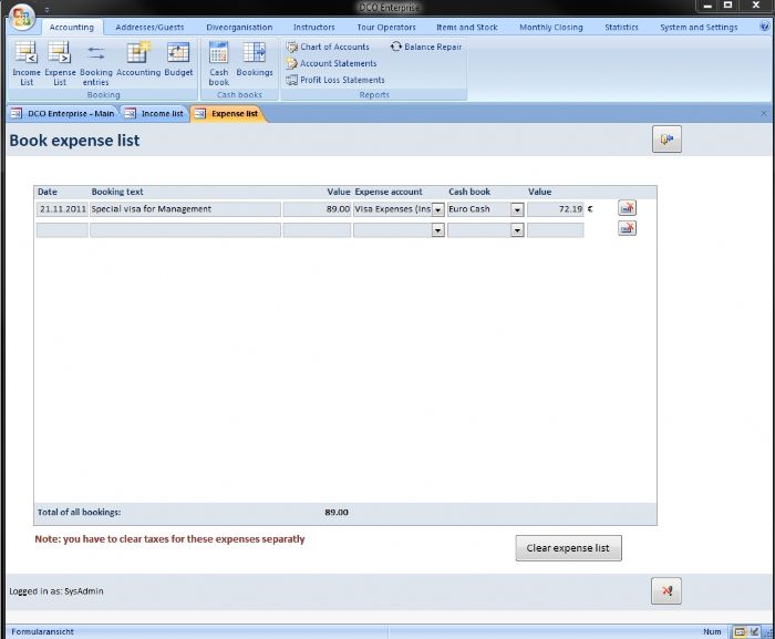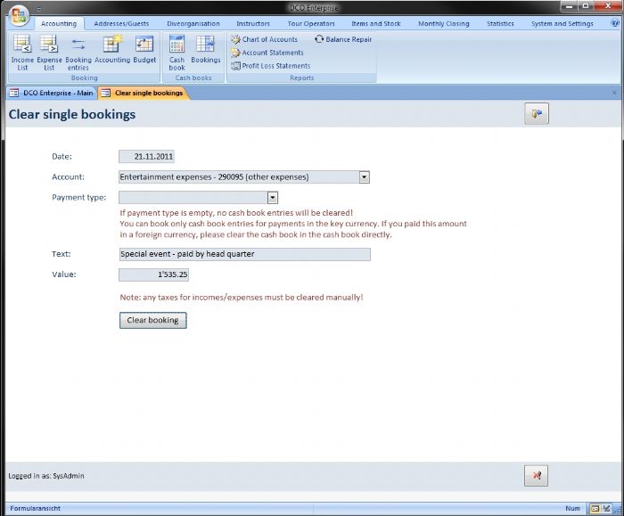 Of course you can even clear single bookings. For these single entries there is no automatically generated report. |