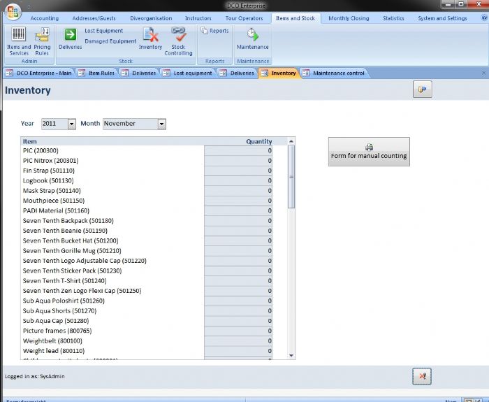 DCO offers you the possibility to do a monthly inventory to find out about missing stock items on a regular basis. |