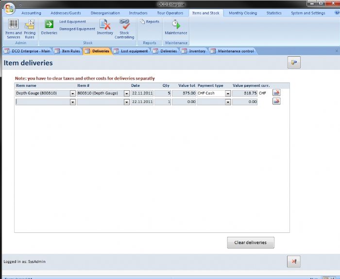 Lost and damaged items can be removed from the stock with a special function which is very easy to use. |