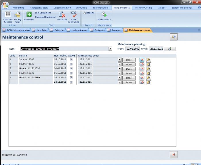 Maintenance of rental equipment is primordial. DCO controls these maintenance intervals and shows you when you have to do maintenance for each item. |