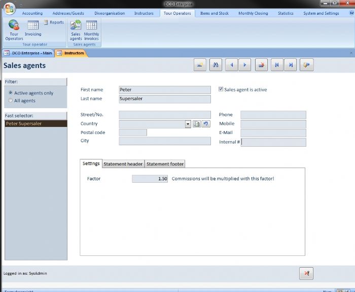 Sales agents do not give any vouchers to the guests (if so, they would be handled as tour operators) but can get any commission for sending the client to your diving school. The commission for sales agents can be set up on every single item.